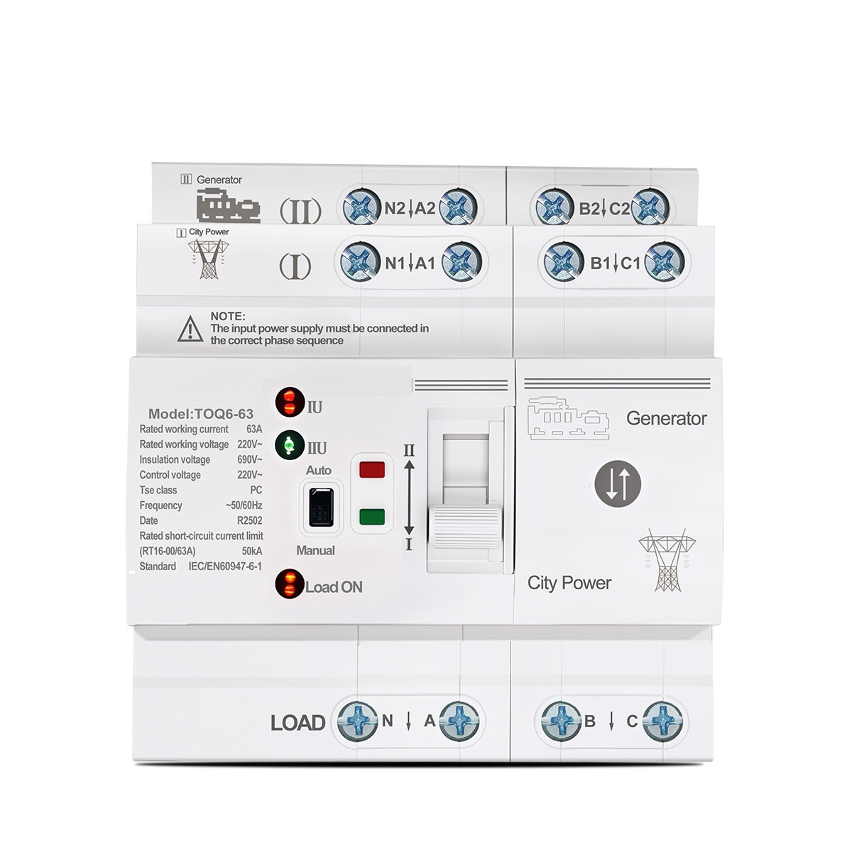 The Thomson TOQ6 Rail type Automatic Transfer Switch (ATS) is designed for 220V live and neutral line systems. It is small, but powerful, is a dual power automatic conversion of uninterrupted equipment. Four-pole (4P) design, rated current 63A, can be seamlessly switched between the main and standby power supply, to provide reliable power for small power scenarios requiring high power supply stability.